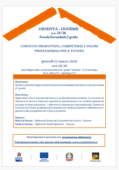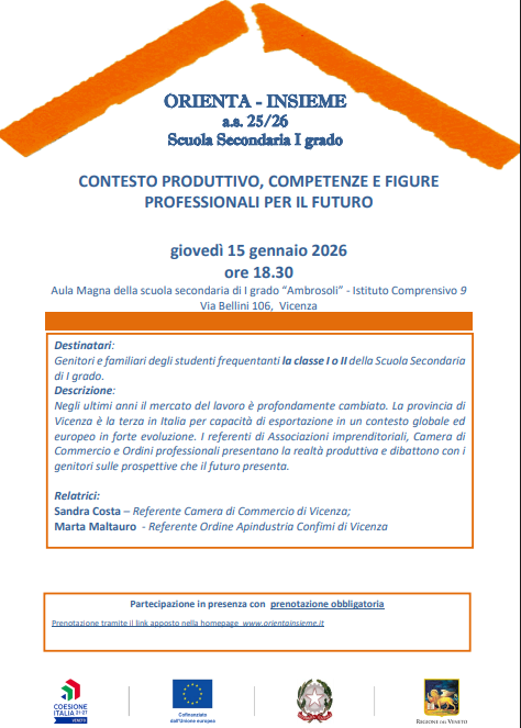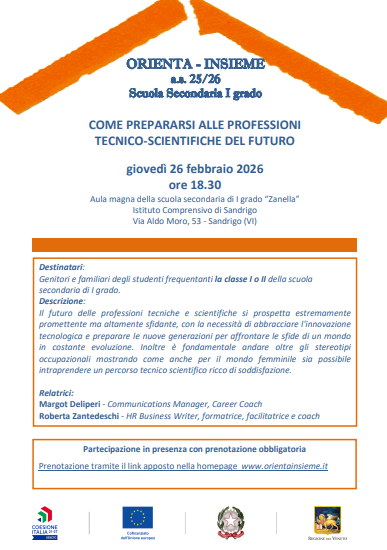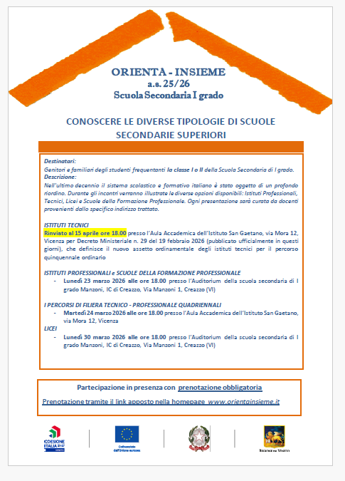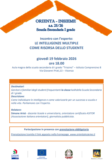 Per questo motivo le scuole aderenti alla rete Orienta-Insieme tramite il finanziamento regionale ricevuto per il progetto ORIENTAINSIEME – NUOVI ORIZZONTI hanno deciso di avviare una serie di iniziative sperimentali da offrire a genitori e studenti frequentanti la classe I e II della scuola secondaria di I grado.